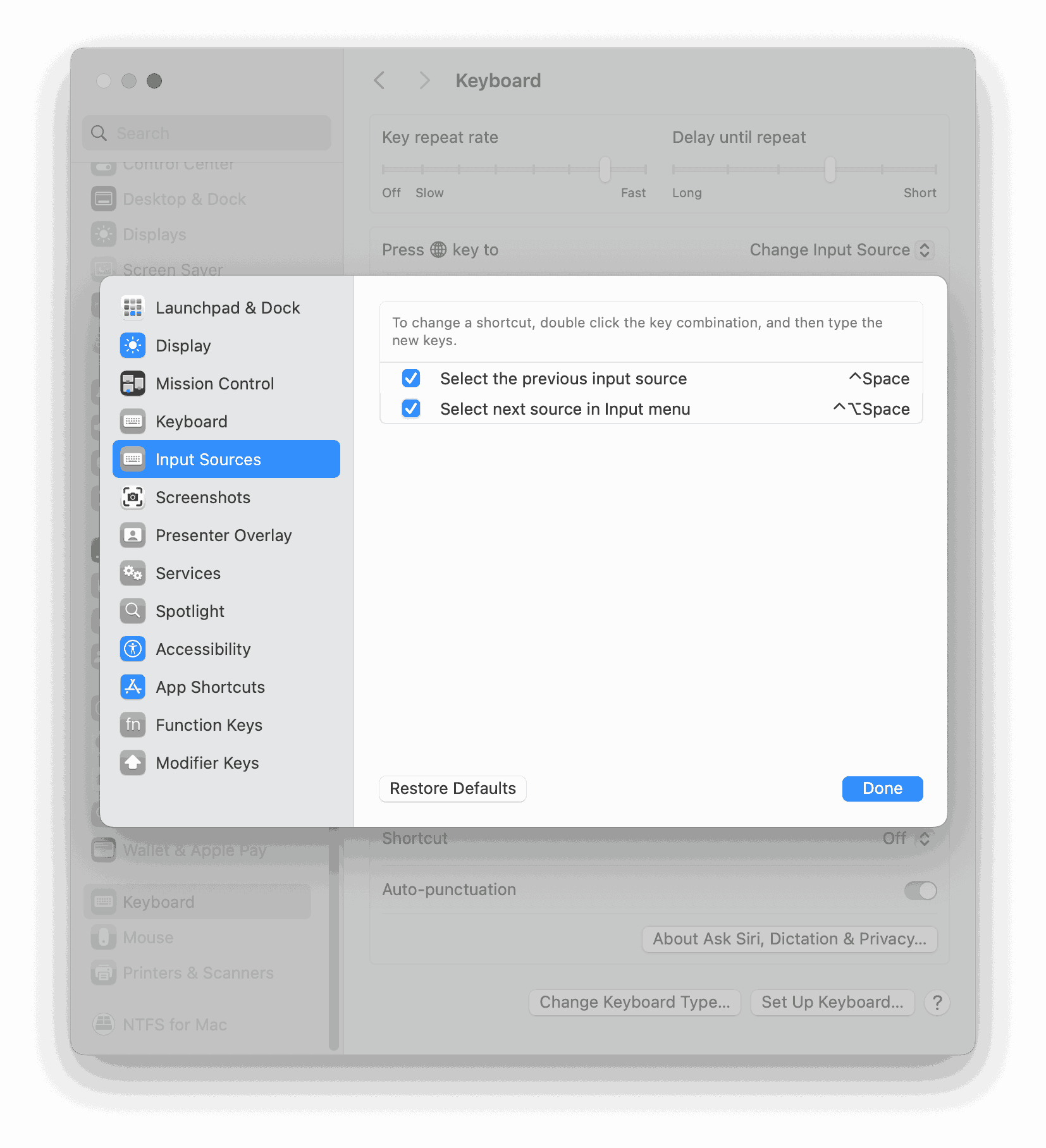 in System Settings->Keyboard->Keyboard Shortcuts->Input Sources